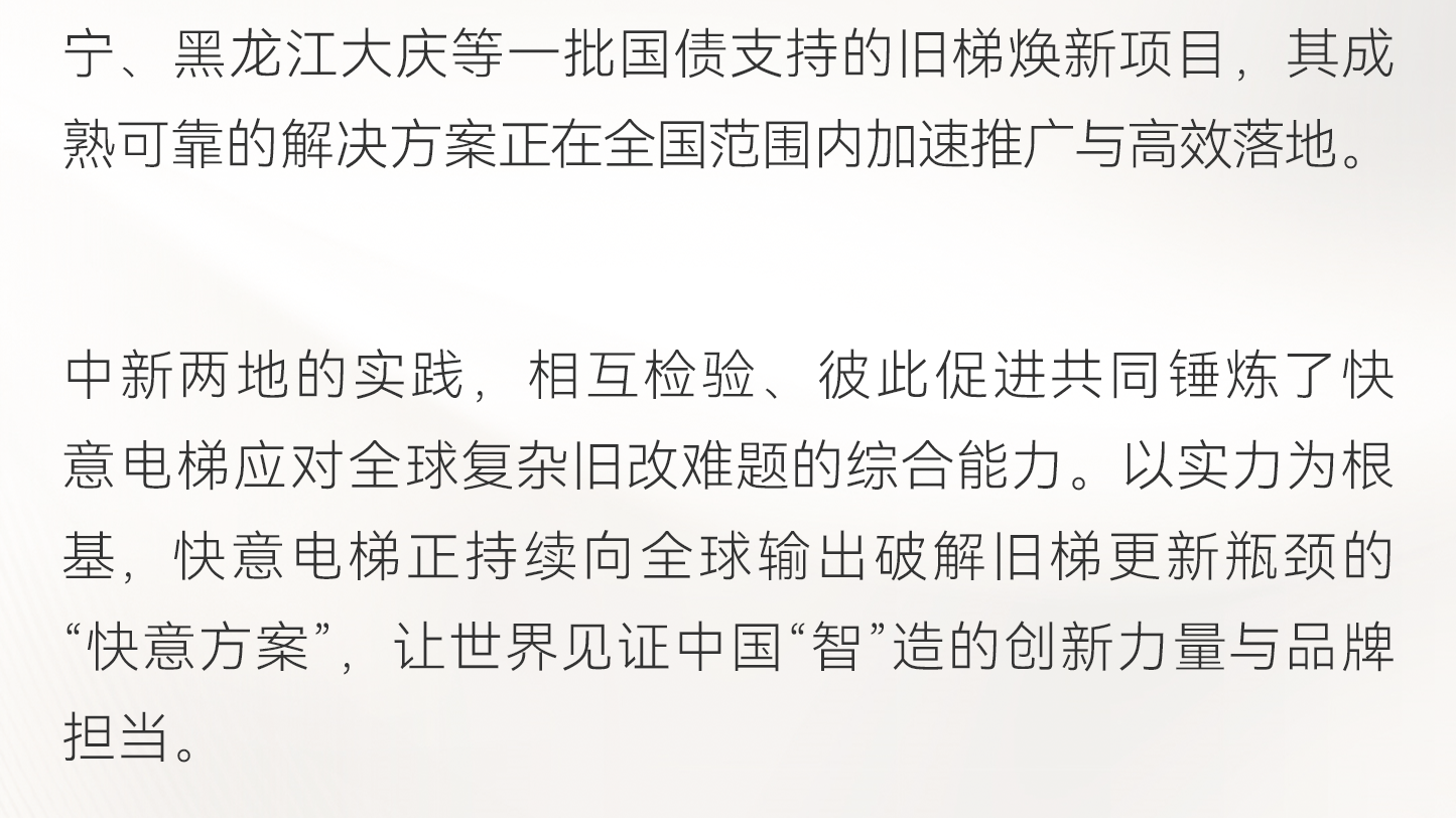 以“技術+服務”出海!快意電梯賦能新加坡老舊電梯煥新